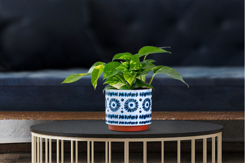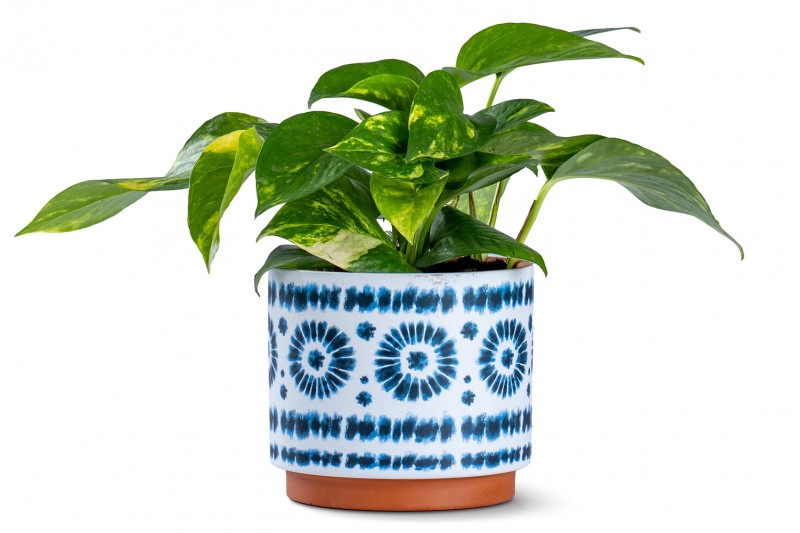 نبتة بوتس مزروعة في حوض سيراميك ابيض بنمط تاي داي