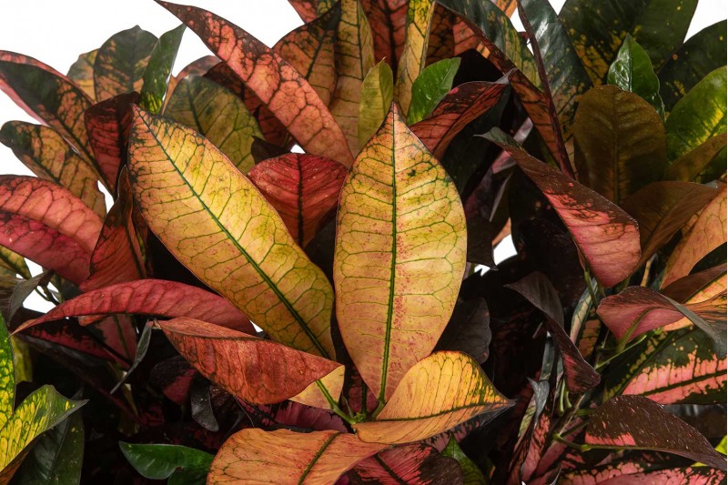 نبات كروتون أو الكوديوم هذا النبات موطنه الأصلي جزر سوندا في آسيا الاستوائية، وأوراقه تختلف شكلاً ولوناً وحجماً، قد يبلغ ارتفاعها المتر، لذلك يفضل عرضها منفردة. ويفرز النبات سائلاً لبنياً غروياً يعتبر سام ويجب الحذر منه خاصةً للأطفال.ويتكاثر باستخدام العقل الساقية في فصل الربيع ويمكن تكاثره عن طريق الترقيد الهوائي بحيث يكشط طولياً الجزء من الساق المراد طمره بالتربة وبعد أن يطمر يترك إلى الشتاء القادم ثم يفصل عن النبات الأصلي.