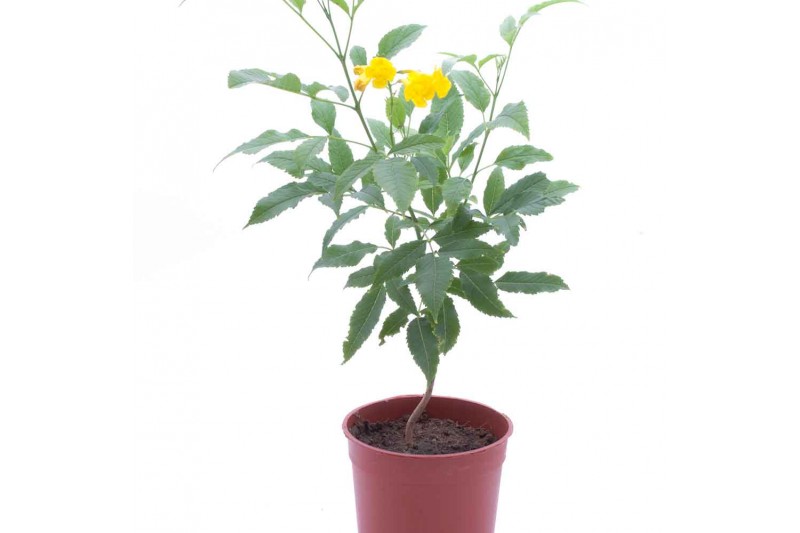 نباتات خارجية تعتبر شجيرة مستديمة الخضرة والازهار أنبوبية الشكل كبيرة صفراء توجد في تجمعات (نورات) تظهر في الربيع والخريف والاوراق خضراء فاتحة منشارية الحواف تزرع لجمال أزهارها وتتحمل الجفاف وتبقى أزهارها لمدة تصل الى 8 أشهر ونموها سريع تزين فيها الشوارع والحدائق والزوايا قابلة للتقليم والتشكيل حسب الرغبة وتتكاثر بالبذور او العقل او الترقيد