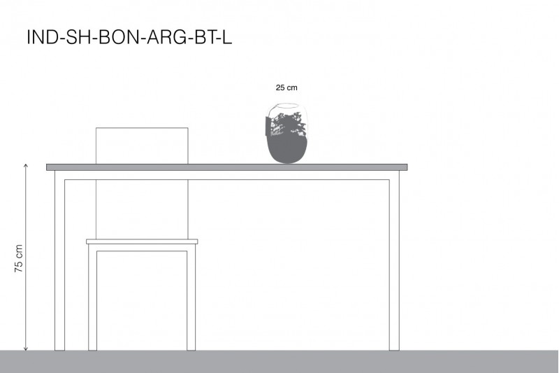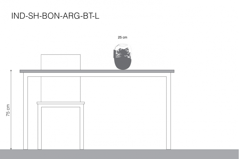 العناصر الزخرفية: توجد أحجار رمادية/صخرية صغيرة موضوعة حول قاعدة النبتة لإضافة لمسة طبيعية.