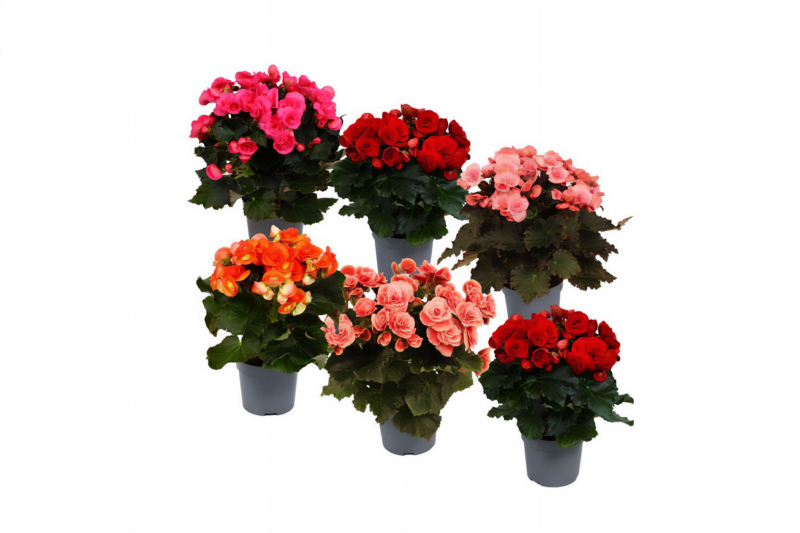 تُزهر البيجونيا أزهارًا صغيرة (1-2 سم) بألوان مختلفة تشمل الأحمر، الأبيض، والوردي، وتظهر هذه الأزهار خلال جزء كبير من العام.