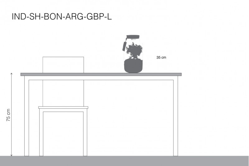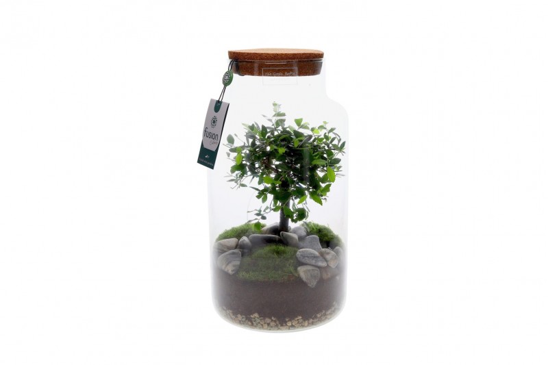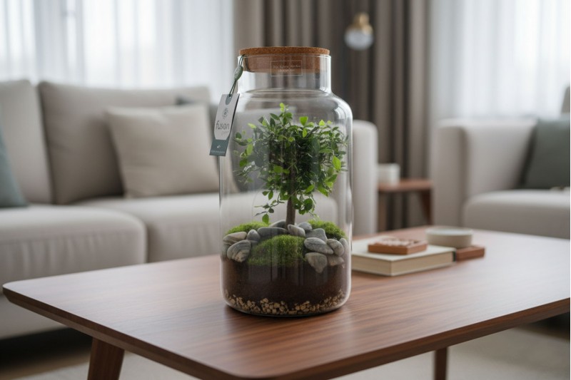 النوع: نبتة بونساي أو شجرة مصغرة، موضوعة في بيئة مغلقة (Terrarium).