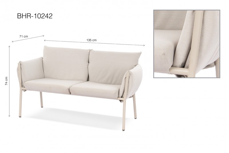 المقعد الثنائي: عرض 135 سم × عمق 71 سم × ارتفاع 74 سم.